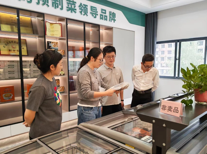 2025年10月16日,杭州市千岛湖高铁新区特色经济办主任吴军一行考察联舌工坊安庆工厂,安庆市庆联食品总经理王露,办公室主任吴银桃陪同考察,实地调研预制菜产业智能化升级与区域合作模式。