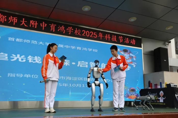 近日,首都师范大学附属中学育鸿学校2025年科技节圆满收官。这场以“追光钱学森·启智航天梦”为主题的科技盛会,以航天精神为魂、以科技实践为翼,让学子在探索中涵养科学素养,在传承中厚植报国情怀,为校园绘就了一幅“少年逐梦、科技铸魂”的生动画卷。