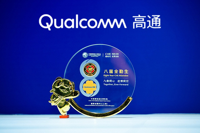 中国国际进口博览局向高通公司颁发的的“八届全勤生”奖牌