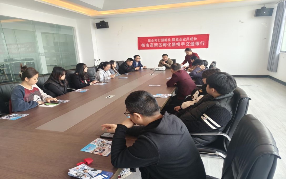 为落实服务实体经济战略部署,破解园区中小企业 “融资难、融资贵” 困境,衡南高新区主动作为,依托与交通银行衡阳分行营业部的联建平台,精准对接孵化器企业金融需求。前期通过多方调研,梳理企业融资与发展诉求,联合交行团队精心策划宣讲内容,确保服务精准、有效。