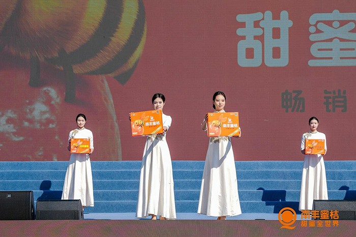 开幕式上,与会嘉宾和海内外客商通过南丰蜜桔品牌包装走秀,沉浸式感受了南丰蜜桔全新品牌形象。“蜜蜂亲吻南丰蜜桔”的品牌符号令人眼前一亮,引得众多参与嘉宾拍照、点赞!“畅销全球40国”则用数据说话,彰显“南丰蜜桔 甜蜜全世界”的品牌实力。另外,现场还举办了南丰蜜桔全球推荐官授牌仪式,南丰蜜桔全球推荐官将通过多元化的传播渠道与创新性的互动方式,助力讲好南丰蜜桔品牌故事。