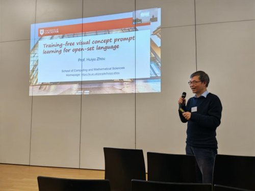 英国莱斯特大学周挥宇教授分享了“无训练的视觉概念提示学习在开放集语言基础分割中的应用”。
