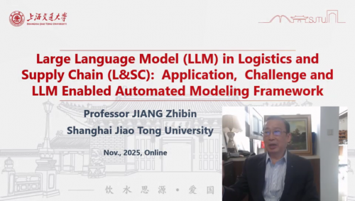 上海交通大学江志斌教授发表以“大型语言模型(LLM)在物流与供应链领域的应用、挑战及LLM驱动的自动化建模框架”为主题的主讲报告。