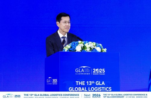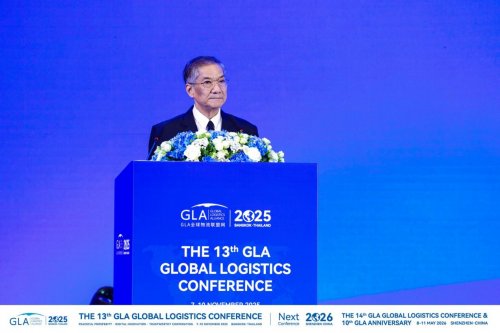 泰国前副总理H.E. Phongthep Thepkanjana出席GLA大会开幕式并发表致辞。他表示,GLA全球物流企业大会已成为全球供应链协作的重要平台,为推动行业创新、深化互联互通作出了突出贡献。H.E. Phongthep Thepkanjana阁下指出,泰国正积极构建高效、可持续的国际物流体系,期待借助GLA这一国际平台,携手各国共建开放共赢的全球物流新格局。他最后祝愿大会圆满成功,续写合作新篇。