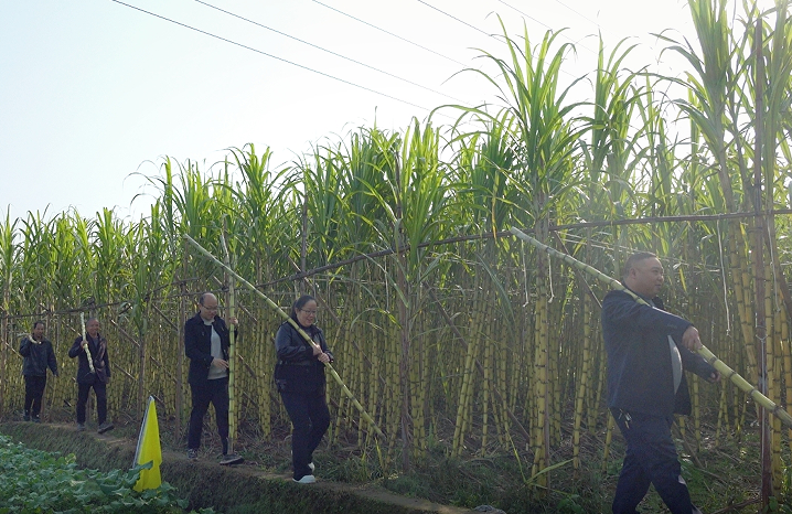 为保障甘蔗品质,王友中在种植管理上坚持精细化培育,定期为甘蔗施加高钾肥,还会通过多次追肥补充养分。“高钾肥能让甘蔗茎秆更粗壮,还能促进糖分积累,这样甘蔗的口感和营养价值都会提升。”王友中说。据统计,甘蔗园一亩地可产出甘蔗3000根左右。