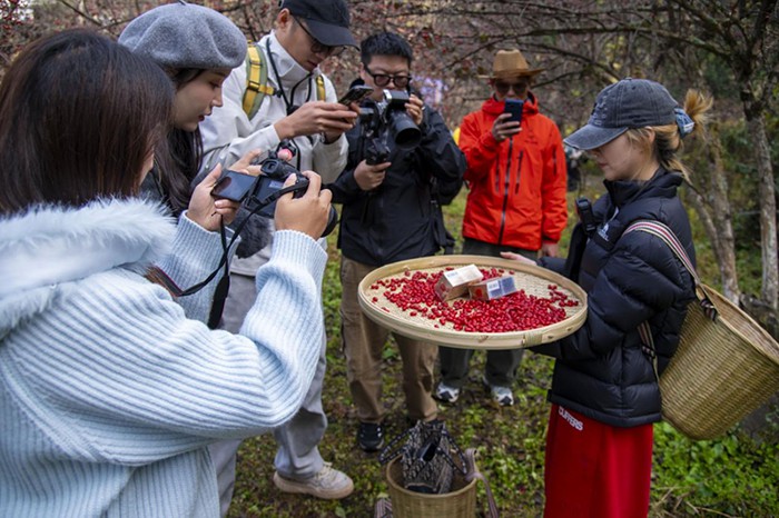 仲景茱萸采摘季现场,人民网、河南卫视以及来自全国各地的嘉宾、达人亲眼见证了道地山茱萸的优良品质。