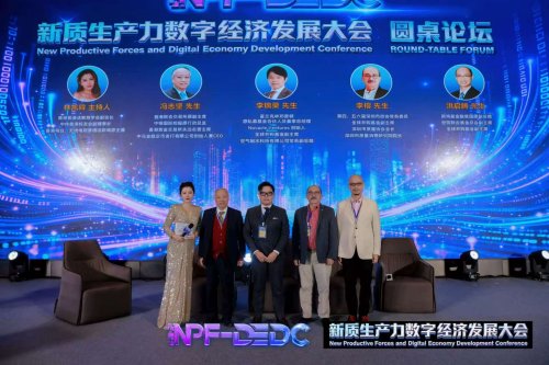 新质生产力数字经济大会圆桌论坛环节由中传香港校友会副理事长林凯玲(左1)主持,香港联合交易所原副主席、中银国际控股原行政总监、香港黄金交易所永远名誉主席冯志坚(左2),富兰克林邓普顿私募基金原合伙人兼北亚主管、富兰克林邓普顿投资(亚洲)原董事总经理、 空气制水科技有限公司常务副总裁李锦荣(左3);第四、五、六届深圳市政协常务委员,深圳市质量协会会长、深圳市品质消费研究院院长、全球并购基金副主席李榕(右2);原新鸿基金融集团副总裁、世贸联合基金总会副主席洪启腾(右1)进行分享和讨论
