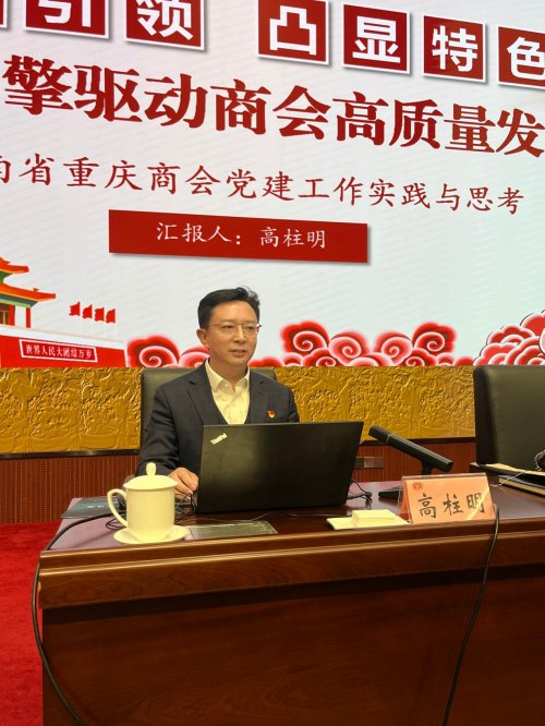 高柱明以《强化引领 凸显特色 以红色引擎驱动商会高质量发展》为题,从“组织筑基、实践探索、经验启示”三方面展开。他以生动案例阐述了商会党委“一二三四五六”特色工作体系如何推动党建与会建深度融合。