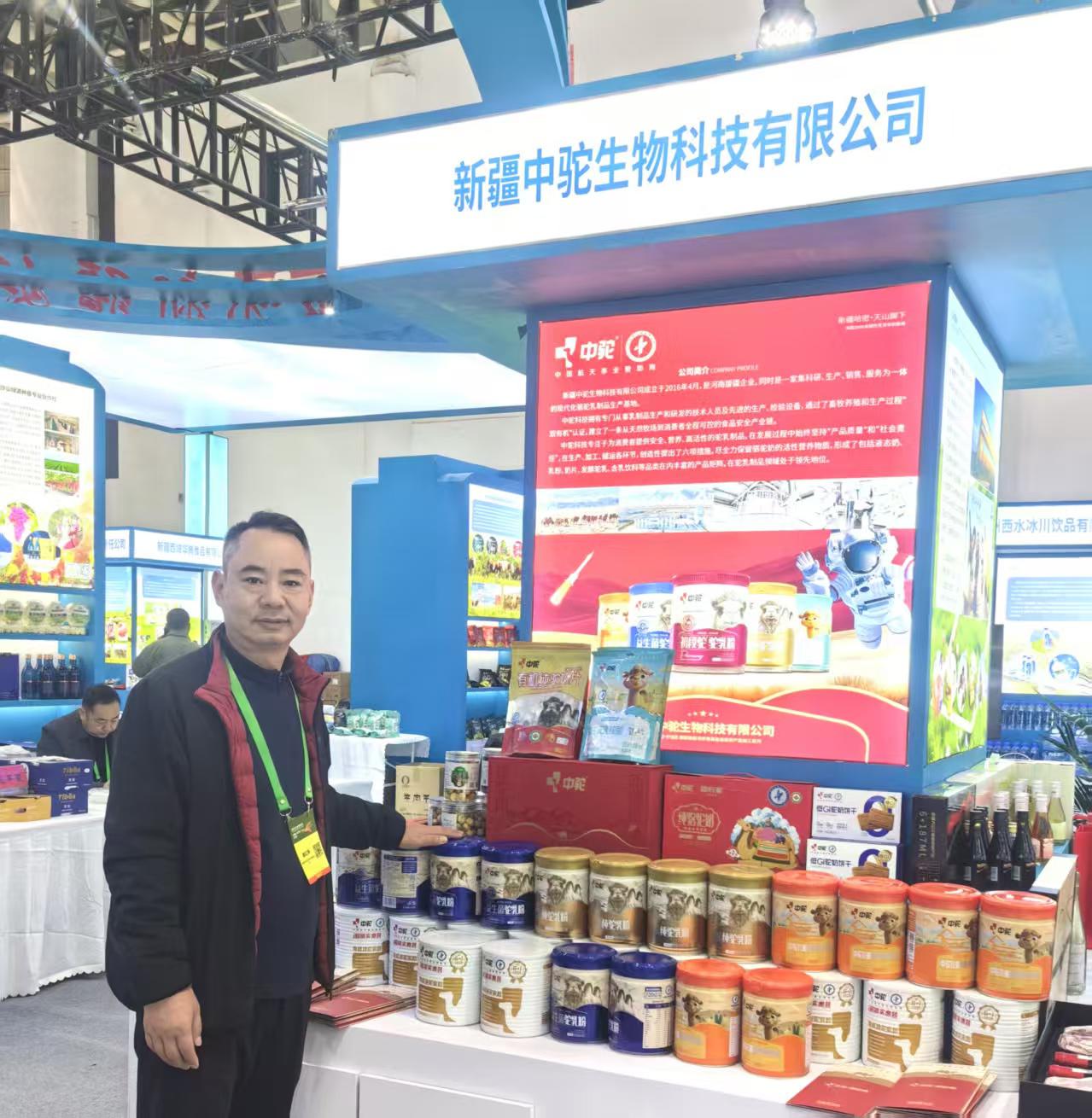 在宽敞明亮的新疆中驼展区内,纯驼奶、驼奶粉、驼奶片、驼乳益生菌粉等一系列主打产品整齐陈列,吸引了大量参观者驻足咨询。工作人员热情地向来宾介绍驼奶这一“沙漠白金”的珍贵价值:富含天然活性蛋白、多种维生素与矿物质,且不含β-酪蛋白,更易被人体吸收,是理想的天然营养食品。