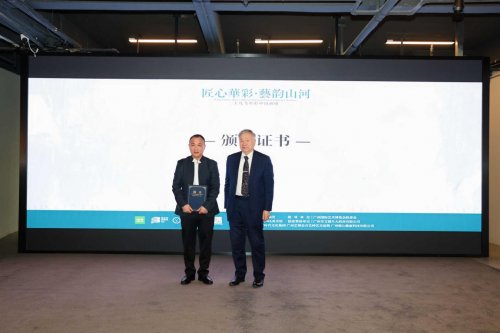 在万众期待中,嘉宾们共同执起金剪,为展览揭幕。一剪落下,红绸应声而开,标志着「匠心华彩·艺韵山河」的壮丽画卷正式向世界展开,邀请所有人步入王凡飞笔下那“天地大美,平和自然”的哲思之境。