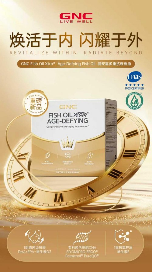 在第八届中国国际进口博览会(以下简称“进博会”)期间,全球领先的膳食营养补充剂品牌GNC健安喜亮相央视“进博新品汇”平台,全球首发GNC Fish Oil Xtra®多重抗衰鱼油(下称“小金钻”)。作为GNC旗下首款复配型鱼油,该产品不仅标志着GNC对心脑血管健康领域的战略聚焦,更旨在为市场开辟一条“由内而外”的全景抗衰新路径。