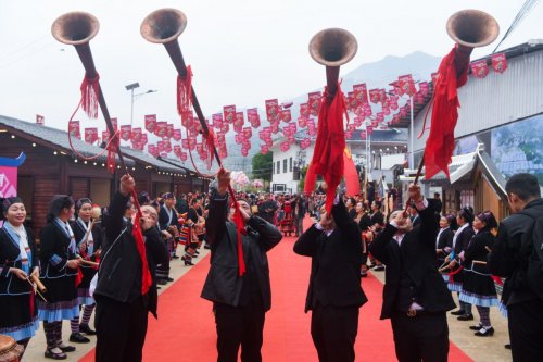 田林县是广西土地面积第一大县,居住着壮、汉、瑶、苗、彝等多个民族,总人口27万,拥有“中国北路壮剧之乡”“中国八渡笋之乡”等四张文化名片,民族文化底蕴深厚 。盘王节作为瑶族历史最悠久、规格最隆重的传统节日,承载着瑶族先民迁徙创业的历史记忆与感恩祈福的文化内涵,自1984年被确定为瑶族统一节日后,成为各民族交往交流交融的重要平台,2006年被列入第一批国家级非物质文化遗产名录 。开幕式上,遵循传统礼制的盘王祭祀仪式庄重举行,瑶族礼生抬着特色祭品依次敬献,请盘王、诵祭文、舞动长鼓舞等环节与自治区级非物质文化遗产《还盘王愿》深度融合,让现场参与者沉浸式感受瑶族文化的神圣根脉与传承魅力。那拉村92岁高龄的《花棍舞》第一代传承人以视频方式,深情讲述当年瑶族群众步行三天三夜以《花棍舞》迎接解放军的赤诚往事;39年前参演首届盘王节的老演员再度登台献艺,用舞蹈串联起跨越近四十年的文化传承记忆,彰显传统艺术的生生不息。