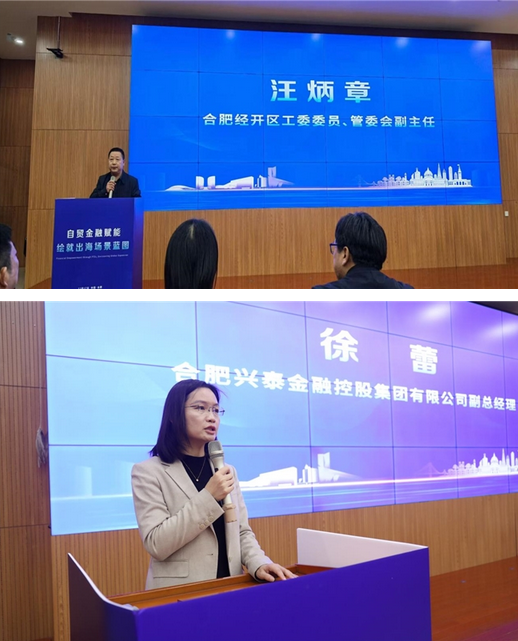 合肥经开区工委委员、管委会副主任汪炳章,安徽省科技评估与监管中心党支部书记、副主任刘赞扬,兴泰控股副总经理徐蕾等领导出席活动。其中,汪炳章副主任、徐蕾副总经理为活动致辞。汪炳章副主任指出,合肥经开区借力长三角一体化、自贸区建设等战略机遇,实现新兴产业与传统产业的协同发展。此次沙龙以自贸金融赋能企业出海,经开区将持续发挥“双区联动”阵地作用,助力企业拓展国际市场,也期盼与参会机构、企业深化合作、相互成就;徐蕾副总经理则分享了金融机构助力科创企业出海的实践路径与未来布局。她立足兴泰控股的服务实践,传递出金融赋能实体经济的务实思路,也为企业跨境发展提供了切实可行的金融支持方向。