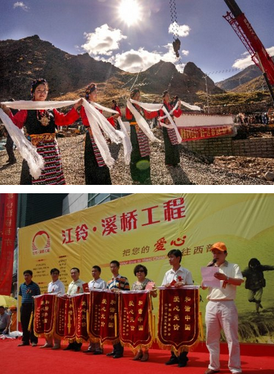 2007年4月,江铃汽车联合中国扶贫基金会(现中国乡村发展基金会)和中国汽车报社,发起“江铃·溪桥工程”公益项目,为缺乏基本交通条件的村寨修建便民桥。