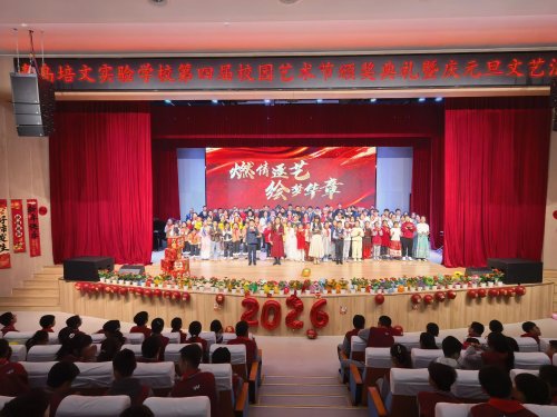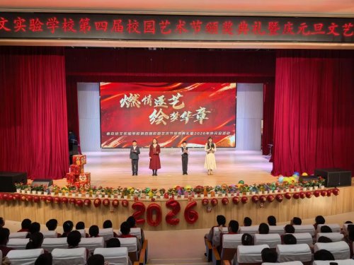 12月31日下午,青岛培文实验学校校园内洋溢着欢乐与艺术的氛围,“燃情逐艺,绘梦华章”第四届校园艺术节闭幕式暨2026年元旦文艺汇演隆重举行。全体师生齐聚一堂,用一场精彩纷呈的文艺演出告别收获满满的旧岁,迎接充满希望的新年。汇演在热烈的掌声中拉开帷幕。师生同台,倾情演绎,节目形式多样,内容积极向上。