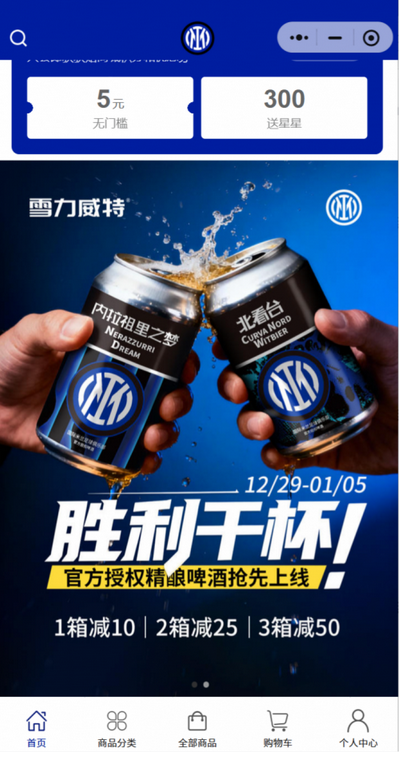 预售活动正火热进行中!本次国际米兰×雪力威特联名精酿预售活动将持续至1月5日,福利叠加让你买到赚到!登录国际米兰官方小程序下单,不仅能第一时间解锁联名款,购买三箱更有立减50元的重磅优惠~重点是,三箱下单即可获得线下Malty Time放空国际米兰主题精酿酒馆邀请函!