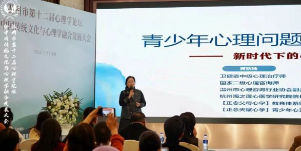 国学哲思赋能“心”力:原浙江工贸学院俞美玉教授以“刘伯温哲学中的养生智慧”为引,将“炁足心自定”养生修为结合,阐释了“以道驭术”的心理调适逻辑;温州海之莲心理咨询中心主任,二十年心理学专家黄秋扬副会长则针对“青少年抑郁的新洞见”这一社会痛点,提出“家庭系统视角下的新洞见”,强调“父母情绪稳定是孩子心理免疫力的基石”,从全新视角看待青少年抑郁和心理问题的解构,作为二十多年实战派名家,黄秋扬老师的解构推陈出新,站在非常高维的角度看见青少年心理问题和家庭社会关系,给全场与会人员一个全新的心理学窗口,让大家意犹未尽的感觉。