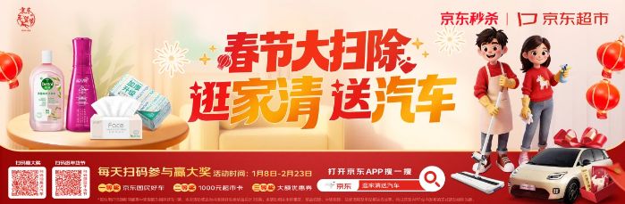 1月22日,来京东APP进入秒杀频道参与活动,1元抢超值好货、抽汽车大奖、囤清洁爆款,用实惠价格解锁全屋焕新,以洁净舒适的居家氛围,迎接春节的到来!