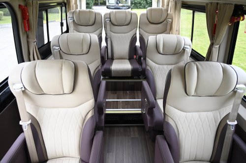 苏州金龙V12商旅版被誉为“海格公路复兴号”。该车基于新V系豪华工艺打造,搭载V6.0全承载底盘平台,兼具优异操控、动力、经济与安全性能,并在乘坐舒适性上实现全面升级。