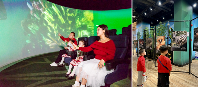 依托国家地理优质内容,横琴国家地理探险家中心以VR、AR 等高新科技,近15个主题项目带您解锁全方位探险。今年寒假、春节,乐园以“马年趣玩:动物探险乐翻天”为主题,推出了一系列精彩纷呈的活动,您可以带上孩子在 “深海探秘”潜入南极冰川海底,邂逅珍稀海洋生物的同时参与海洋环保;“360 动物之旅” 置身360°环幕投影,一起与野生动物亲密接触;在“极限远征”里驾驶越野车与昆虫赛跑、沉浸式感受自然野趣;还有 “考古挖掘” 拼接恐龙骨架、“对话百兽” 解锁环保知识,数十种趣味任务让每一步探索都充满惊喜,边玩边学轻松学习自然与动物科普。