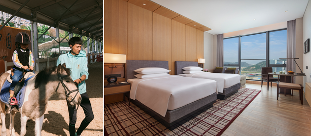 依托创新方一站式国际级文旅综合体优势,横琴凯悦酒店推出限定“新春马术客房套餐”,让亲子度假更具仪式感!套餐2026年2月9日-2月28日发售,1358元起即可享受:凯悦客房1间1晚含2大1小自助早餐,还有菲尔马术亲子骑乘体验+喂马互动(1大1小),马术场地距离酒店仅8分钟车程,轻松解锁“住宿+玩乐+特色体验”的高品质度假模式。