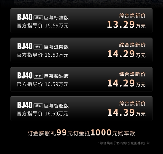 随着越野文化普及,越来越多用户渴望体验越野乐趣,却常受困于操作复杂、体验单一等问题。北京越野精准捕捉这一诉求,推出BJ40燃油巨幕版,以13.29-14.39万元的综合焕新价,让专业越野进入全民可享的新阶段。