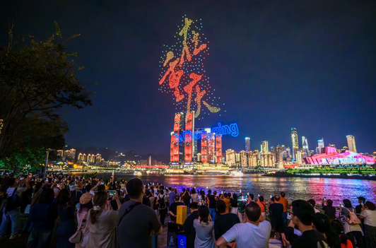作为中国无人机集群表演的开创者之一,大漠大智控秉持“高科技+数字娱乐+环保”理念,深耕文旅夜经济赛道。其自主研发的箱式起降技术,大幅提升部署效率与场地适应性,曾六次荣登央视春晚舞台,更成为2020年迪拜世博会中国馆唯一无人机表演伙伴。2025年,公司以11787架无人机在重庆成功挑战“最多无人机组成的空中图案”吉尼斯纪录,其“光影重庆”等大型城市驻场表演项目,成为文旅融合的典范之作,为城市夜间经济注入科技活力。