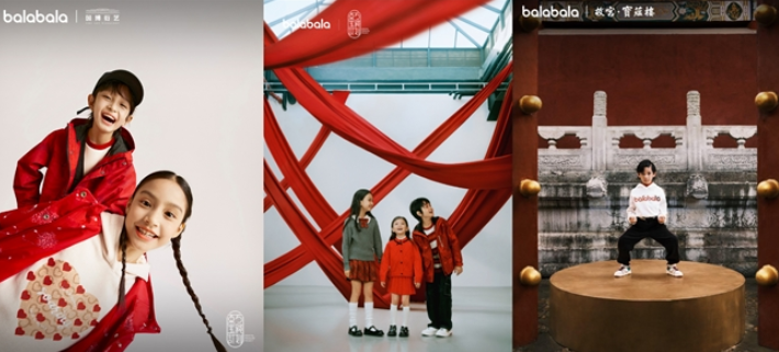 巴拉巴拉长期致力于国家级文化IP的合作与深耕,2020年与敦煌博物馆携手,将千年壁画的绚烂色彩与飞天意象融入童装设计开始;2021年,苏州博物馆的江南美学通过服装剪裁与图案得以当代诠释;2022年,品牌相继与故宫宝蕴楼、中国文物交流中心合作,将宫廷美学通过服装设计进行美学演绎;至2025年,与中国国家博物馆国博衍艺的联名,将文物故事转化为可穿戴的文化符号,多年来通过与权威文化机构的持续联动,已建立起体系化的传统文化转译能力与内容沉淀。