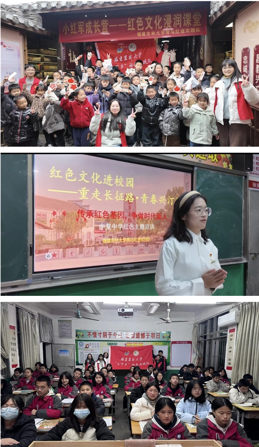 青春踏歌行,红途启新程。福建农林大学青马红途实践队以三下乡实践为纽带,既让红色文化在沉浸式体验与创新教育中代代相传,又以实际行动为中复村文旅融合发展出谋划策。红色基因的传承为乡村振兴提供了精神指引,乡村振兴的实践则让红色文化焕发时代生机。在这场青春与红土的相遇中,实践队用脚步丈量初心,用真情凝聚力量,让红色热土既留存历史记忆,更绽放发展活力,为革命老区实现“文化兴、产业旺、乡村美” 的振兴目标注入源源不断的青春动能。