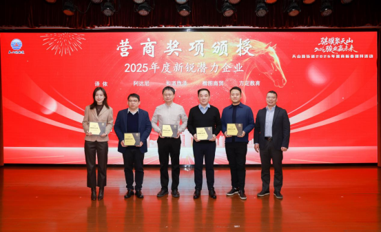 近日,上海长宁区天山路街道“骐骥聚天山 骏业赢未来”营商新春团拜活动顺利举行,辖区近40家重点企业、标杆楼宇代表与相关职能部门负责人齐聚一堂,共话发展、共启新篇。活动现场,译依YIYI凭借稳健的发展态势、鲜明的品牌特色、突出的成长潜力,从众多企业中脱颖而出,成功获评天山街道2025年度“新锐潜力企业奖”,成为辖区女装行业高质量发展的新生标杆。
