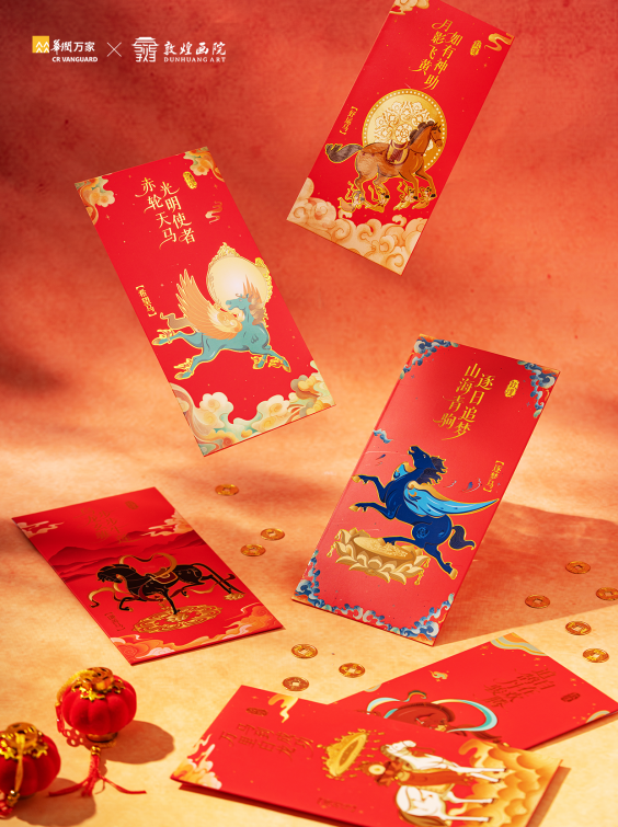 此次联名,敦煌画院从壁画“迦叶化百马”这一传说中汲取灵感,将千年石窟里的灵动骏姿,凝练为 “敦煌神马”IP。华润万家也将这份跨越时空的祥瑞祝福制成了独家联名的敦煌神马红包;同时,华润万家亦同步呈现多款精美敦煌系列周边,让文化走出壁画,走进柴米油盐。