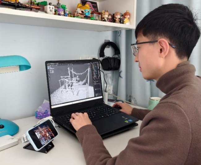 他选择的工具是Blender——一款开源免费、操作友好且覆盖全流程的三维创作软件。作为初级接触数字建模的新人,他首先把B站上的Blender教学视频逐帧学习了一遍:基础篇、建模篇、材质篇、粒子篇、渲染篇……数十小时的理论学习,为后续的建模操作打下了坚实基础。