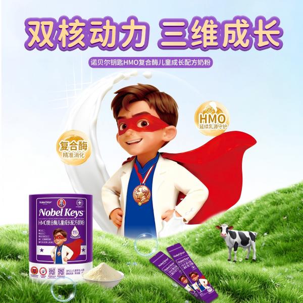 选择诺贝尔钥匙HMO复合酶儿童成长奶粉,给孩子科学、安心的营养守护