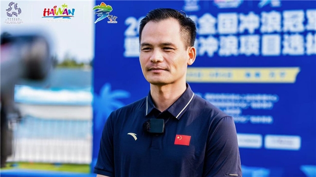 海南体育职业技术学院水上运动中心主任 林桥汶为选手颁奖