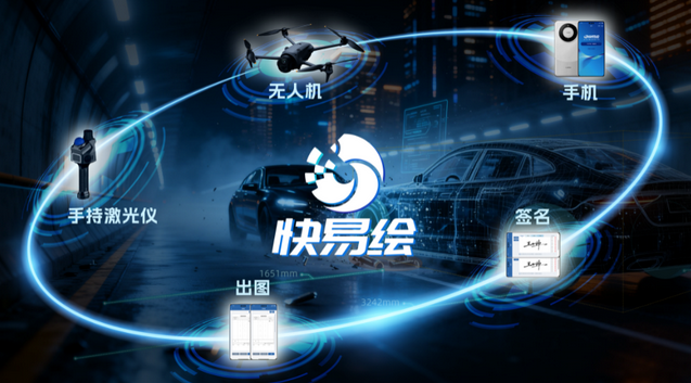 快易绘 2.0 支持激光点云采集完成后,在配套平板端直接完成现场编辑与事故图导出,将“复杂环境下的现场出图”转化为稳定、可复制的系统能力。