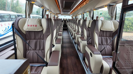 当被问及新V系还有什么打动人心的地方,何丽笑着提到了一个词——“移动影院”。车内采用“2+1”座椅布局,专为高端旅游市场量身定制。据介绍这批客车旨在满足国内精品游、长线游及个性化定制线路的需求,因此对车内空间、USB充电接口、饮水机及智能座舱系统等配置均提出高要求,以期为乘客带来更加卓越的旅途体验。并且新V系的内饰设计彻底颠覆了传统客车的沉闷。新中式风格、氛围灯、更符合人体工学的座椅,甚至被游客评价为像“移动影院”。