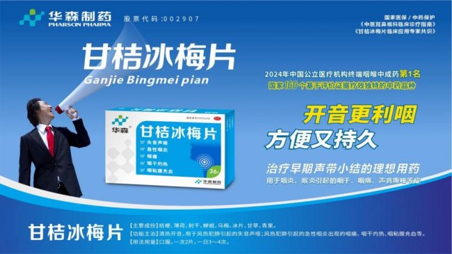 该药已在临床一线广泛应用20年,自上市以来,华森制药甘桔冰梅片持续不断地在毒理药理、产品疗效、不良反应监测、临床应用等方面开展了大量临床循证研究、共识项目及临床评价等系列工作。现代药理毒理研究显示,该药具有抗炎、抑菌、抗病毒、止咳化痰、抗过敏作用,且无明显毒副作用。多项RCT研究结果也显示,甘桔冰梅片是治疗中医药优势病种急慢性咽炎、急慢性喉炎、早期声带小结的特色药品,其作用机理明确,改善症状快,降低复发率,疗效显著,安全性好,得到广大医生患者好评。2023年,甘桔冰梅片入选国家中医药管理局组织相关部门评选并发布的《100个基于评价证据疗效独特的中药品种》(位列40),更是从安全性、有效性、经济性、创新性、适宜性、可及性和中医药特色等6+1维度对甘桔冰梅片给予了最大的肯定。