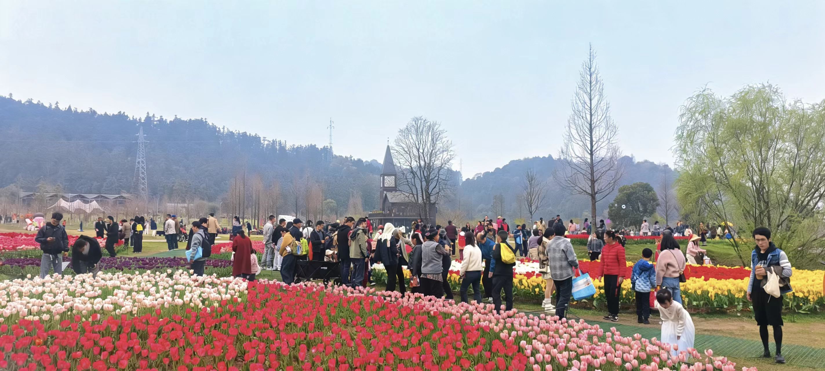 小镇配套休闲娱乐设施完善,郁金香花海、欧式钟楼、风车景观、樱花大道、方芯湖、将军岭徒步路线等景观串联成线,集观光拍照、休闲漫步、生态研学于一体;智慧导览、便捷休憩点位等配套服务齐全,打造集赏花休闲、美食打卡、研学度假于一体的特色文旅目的地。