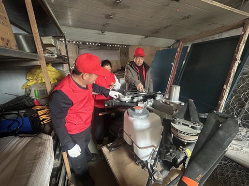 走进突泉镇新生村,“农机哥哥”志愿服务队正在对村民家中的拖拉机、捆草机等大型农机具进行检修,为春耕生产做准备。