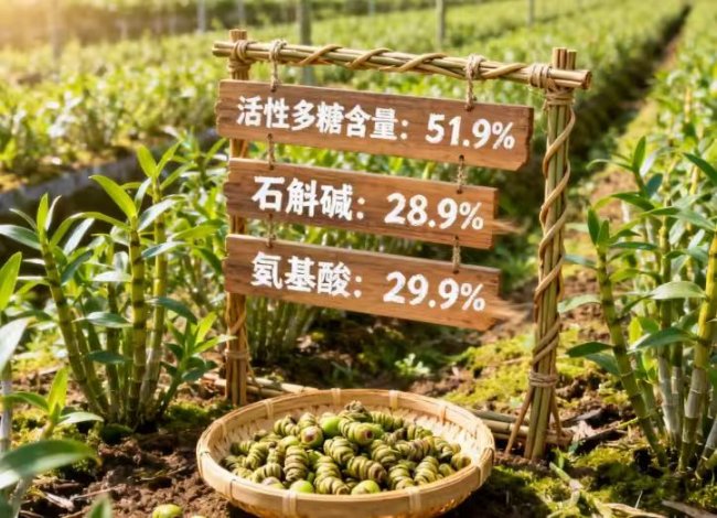 这三项数据均显著高于市场上多数同类产品。其中,活性多糖含量超过50%这一关键指标,意味着其滋阴润肺、增强免疫力的基础功效有着坚实的物质基础;高含量的石斛碱与氨基酸,则进一步支撑其在抗疲劳、调节代谢方面的传统应用价值。