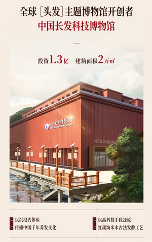 为了系统性地保护与转化这一非遗智慧,桂林市政府牵头规划,长发小寨投入1.3 亿,建成2万㎡中国长发科技馆——全球首座 “头发”主题博物馆。这种重资产深耕原产地实体的布局,为其非遗成分(红瑶淘米水)的溯源与标准化生产提供了坚实的产业底盘。