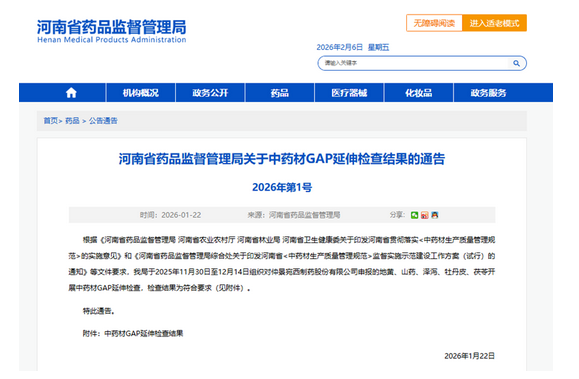 事实上,一年前,该公司山茱萸已于2025年2月率先通过GAP延伸检查,仲景宛西制药也成为河南省首家通过GAP延伸检查的企业。