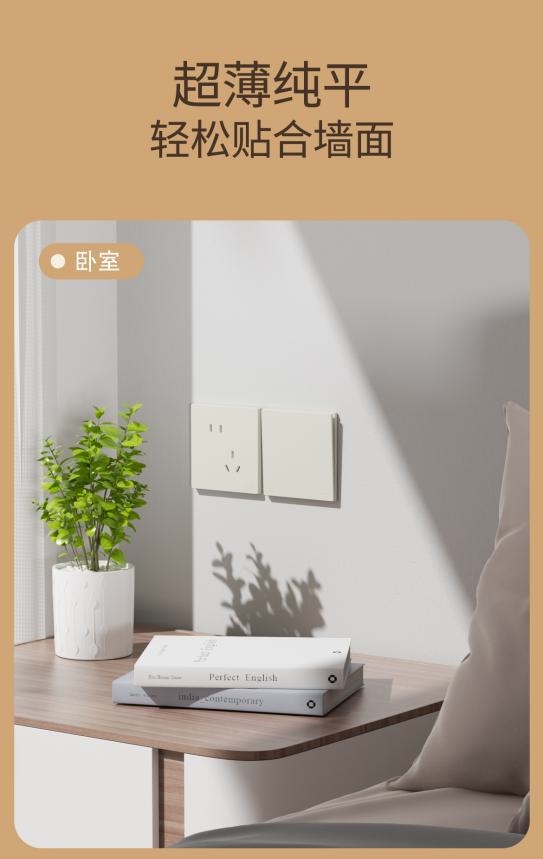 295F系列开关的推出,延续了品牌在产品设计上的“美学”坚持。6mm超薄面板与免喷涂肤感工艺相结合,使产品在视觉与触觉层面形成统一的表达;自然本色与场景化搭配,为消费者提供了更多元的选择空间,也使开关成为家居空间中更具整体美感的组成部分。