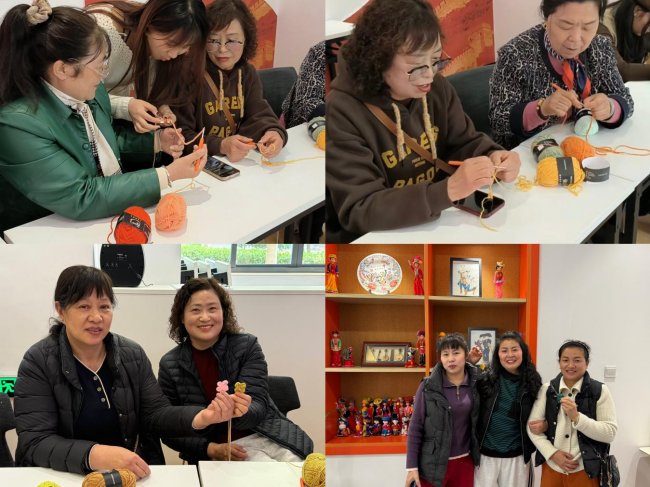 在志愿者的专业指导下,社区居民认真学习锁针、短针等基础针法,亲手钩织石榴、花朵等寓意团结的造型。一针一线皆寄情,大家在动手创作中相互交流、彼此协助,在体验非遗魅力的同时,增进情感联结,更让“各民族像石榴籽一样紧紧抱在一起”的理念融入指尖、扎根心中。