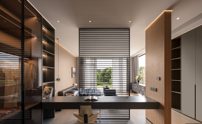 杨帆江山慈悦择址台州始丰湖南岸,坐拥一线湖景,是集高层、洋房、排屋、叠墅于一体的复合型滨水住区。本次落成的1060㎡独栋别墅,融合现代建筑风格,以契合时代发展的前瞻生活理念,匠造了一处集奢华质感与智能科技于一体的理想人居。在该项目中,三峰照明全面应用了SUFN OS全屋智能家居系统,搭配添智系列易享面板、锐志II深防眩射灯及幻影灯带,为别墅近30个空间场景量身定制了极致舒适、健康的智能灯光方案