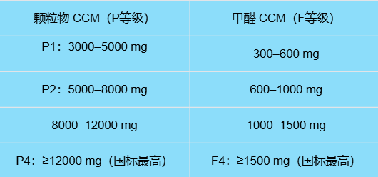 CCM(累积净化量)颗粒物 CCM50000mg+远超国标最高标准P4的12000mg, 甲醛 CCM:12000mg以上,超国标最高F4 8倍以上。