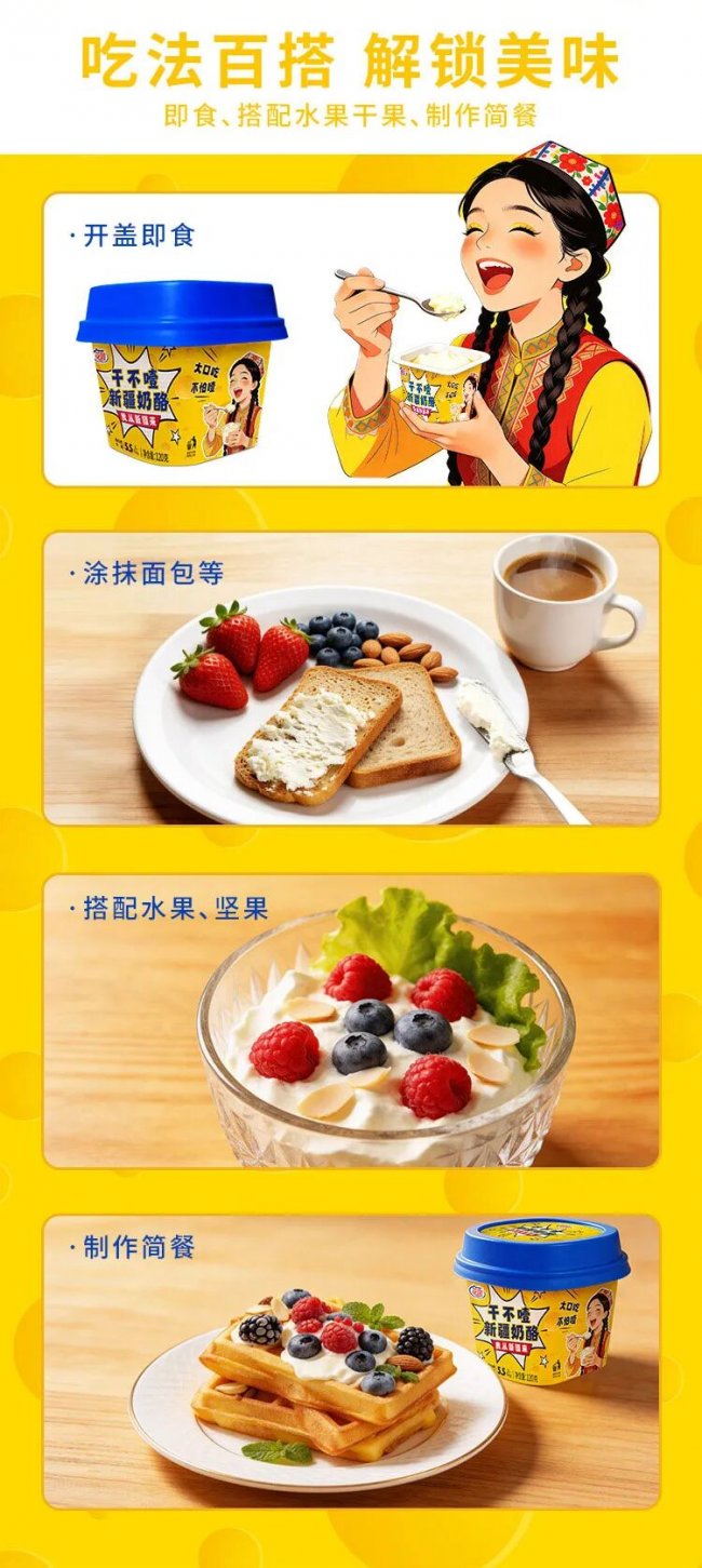 花园奶酪是全能美味搭档,解锁多种食用方式:开盖即食,随时随地补充能量;涂抹面包、搭配水果坚果,早餐元气拉满;融入烘焙、制作简餐,轻松升级风味。不管是休闲解馋还是日常佐餐,都能轻松适配,承包你的美味时光。