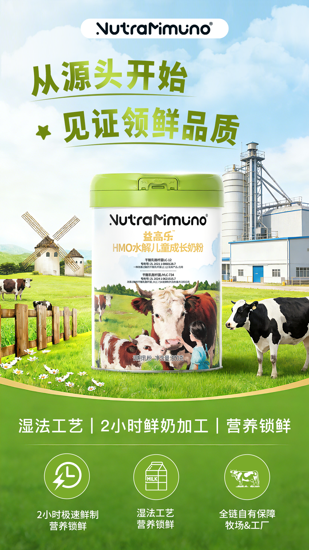 在产品工艺方面,益高乐采用低温湿法生产工艺,并搭载“保洁”与“锁活”两大核心技术。湿法工艺是国家在《婴幼儿配方乳粉生产许可审查细则(2022版)》中明确的三大合法工艺之首,要求企业具备从牧场到加工的一体化控制能力。益高乐在生产过程中坚持原奶挤出后瞬时冷却降温,在2小时黄金保鲜期内低温送达工厂,从源头保留原奶中的天然活性营养成分。