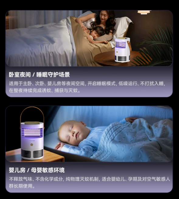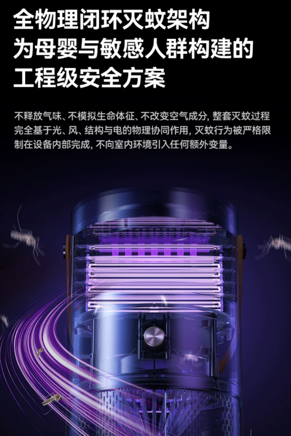 一到夏天,蚊虫问题几乎成了不少家庭绕不开的“日常烦恼”,也让“纯物理灭蚊”逐渐成为新的关注方向。点蚊香味道重、用电蚊液又担心刺激,本以为灭蚊器是更省心的方案,但实际使用中,不少产品依旧存在短板:有的依赖单一诱因,环境一变效果就不稳定;有的灭杀链路不完整,蚊虫容易逃逸;还有的噪音偏大、安全性一般,不太适合卧室或母婴房等场景。