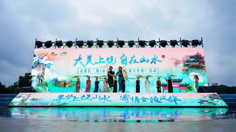 南京与上饶,一为六朝古都,文脉绵长;一为赣鄱门户,山水灵秀。当秦淮河的流光映照信江的潋影,两座名城便在长三角一体化的时代浪潮中,奏响文旅交融的动人乐章。本次活动由上饶市文化广电旅游局、上饶市全域旅游发展中心主办,上饶市传媒集团、上饶市文化旅游协会承办。活动以“寻梦上饶山水,寄情金陵风华”为主题,精心策划了“饶”有“旗”遇丽人秀、“饶”有风华推介会、“饶”有好物非遗展三大环节。通过推出沉浸体验、非遗展演、文旅推介、特色市集等形式,向江苏南京市民乃至长三角游客多角度呈现上饶的自然之美、人文之韵与业态之盛。